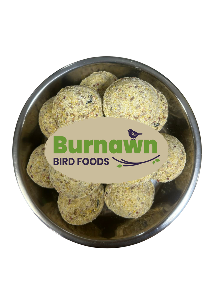 90g fat balls, unnetted. A delicious, high energy treat for all species wild birds. Packed with seeds, the birds love them. Use for feeding all year round. Pop straight onto a bird table or fill up a fat ball feeder and hang in your garden.